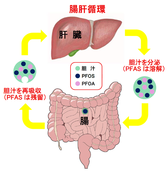 図. 「腸肝循環」によるPFAS体外排出のイメージ